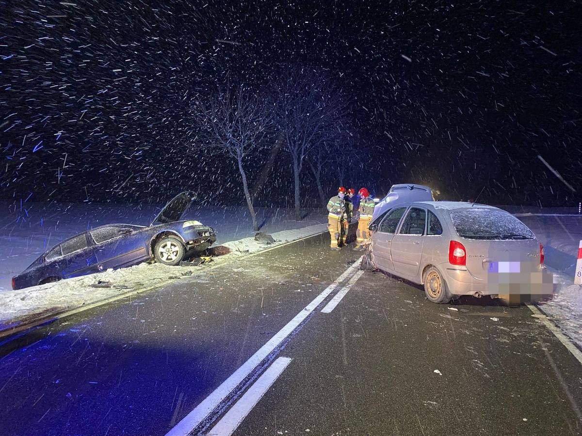 z nieustalonych przyczyn, na prostym odcinku drogi zjechał na przeciwległy pas ruchu i zderzył się z jadącą z przeciwka Skodą kierowaną przez 60-latka. Następnie kobieta jadąca Peugeot, uderzyła