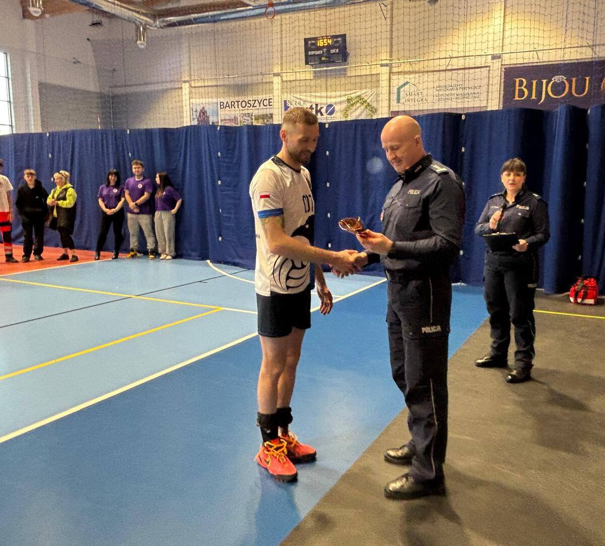 W sobotę (14.03.26 r.), dzięki uprzejmości Burmistrza Miasta Bartoszyce Pana Wiesława Kuracha w hali sportowej Bartoszyckiego Ośrodka Sportu i Rekreacji odbył się Charytatywny Turniej Służb Mundurowych w Piłkę Siatkową o Puchar Komendanta Wojewódzkiego Policji w Olsztynie. Pomysłodawcami wydarzenia byli: insp. Dariusz Ślęzak Komendant Powiatowy Policji w Bartoszycach, zagorzały siatkarz i miłośnik tej dyscypliny oraz Pani Paulina Grażul Prezes Fundacji Bohaterskie Marzenia. Jak się okazuje, na służby mundurowe można zawsze liczyć, bo pomagają nie tylko zawodowo. Zagrali, by zebrać pieniądze dla Fundacji, a przy tym dobrze się bawić i lepiej poznać, bo bez wątpienia tego rodzaju wydarzenia sprzyjają integracji,