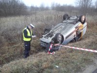 Policjanci pracowali na miejscu wypadku drogowego, do którego doszło na drodze powiatowej Wiatrowiec – Sępopol. Ze wstępnych ustaleń policjantów wynika, że kierujący osobowym volkswagenem 35-letni mieszkaniec Sępopola nie dostosował prędkości do warunków drogowych, wpadł w poślizg, zjechał na przeciwległy pas drogi i zderzył się z jadącym z naprzeciwka osobowym renault. Na skutek uderzenia renault dachowało w przydrożnym rowie. Ranny kierowca i pasażer renault trafili do szpitala. Policjanci ustalają dokładny przebieg zdarzenia.